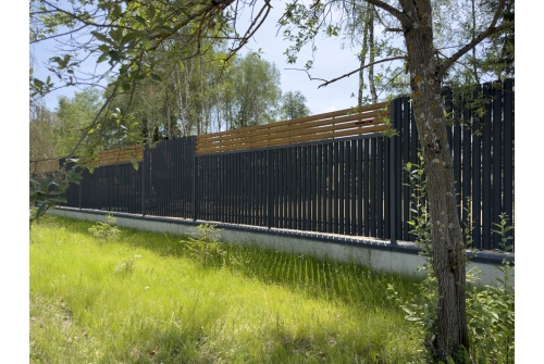 Ограждение такого типа визуально обладает легкостью, оно продуваемо, не обладает парусностью, оставляет участок частично открытым, но при этом максимально защищённым.