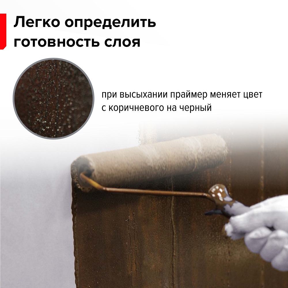 После высыхания праймер становится чёрным, что позволяет легко определить готовность поверхности к нанесению гидроизоляционных материалов. Можно использовать при температуре от 0°С до +40°С. Он наносится за один раз, что позволяет экономить время и материалы.